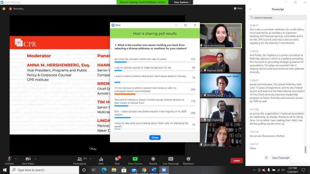 Outten then answered a question about CPR’s employment ADR program and how it can help employers not only set up, but also ensure long-term success.